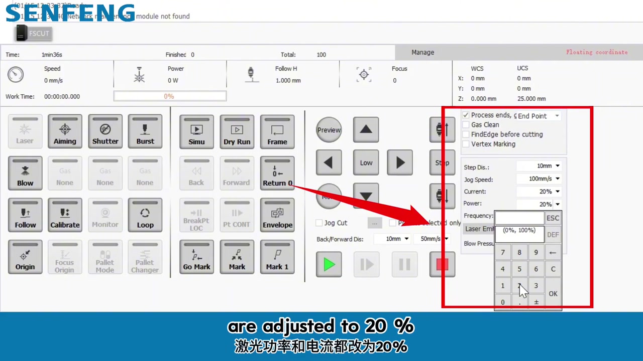 - Paso 4. Paso dos: ajuste tanto la potencia como la corriente del láser al 20%.