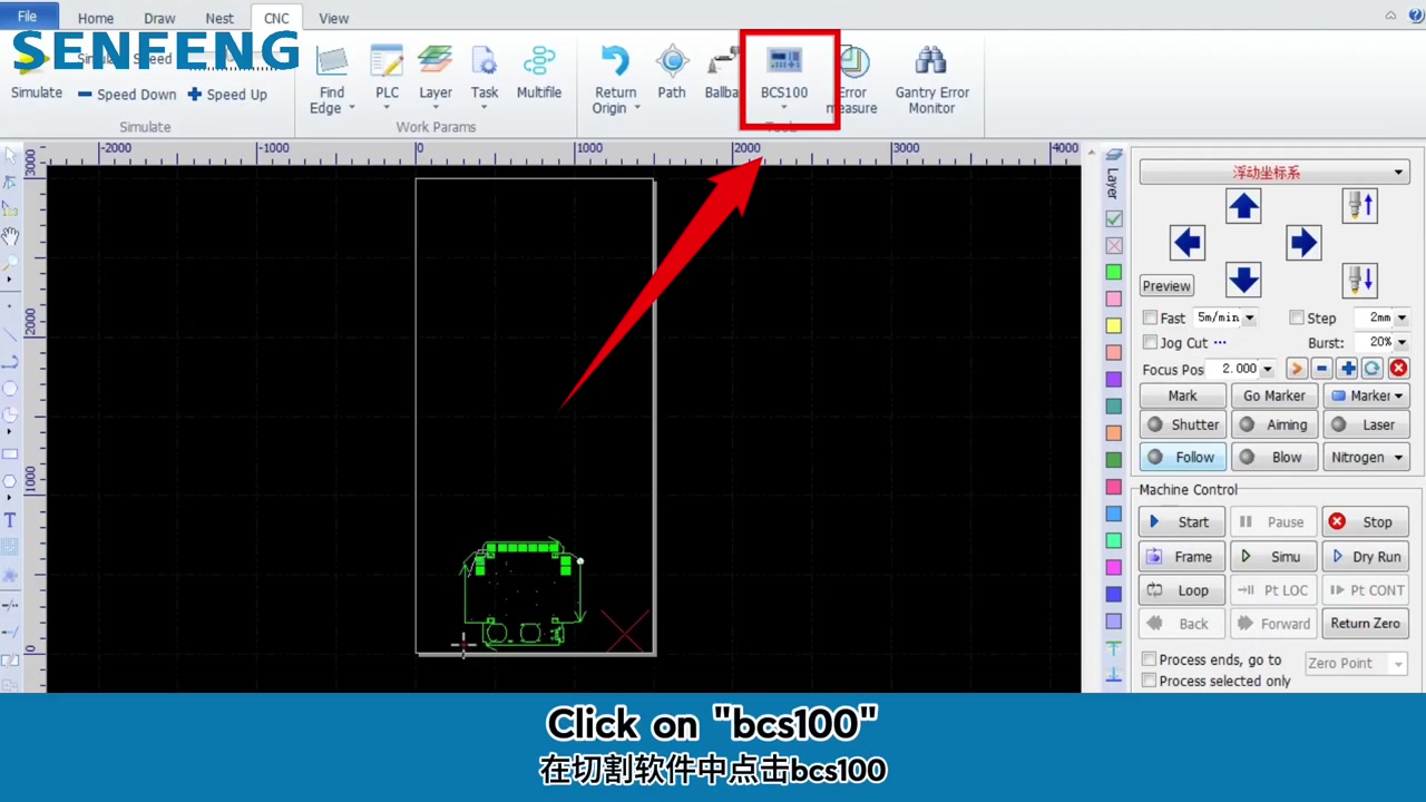 - Paso 1. Paso uno: haga clic en BCS100 en el software de corte.