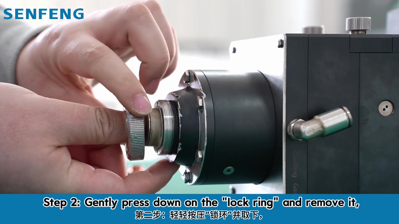 - Paso 3. Paso dos: presione suavemente el anillo de bloqueo hacia abajo y retírelo.