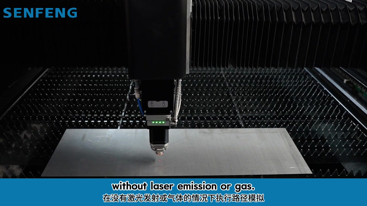 - Paso 3. Modo de corte en seco: ejecuta simulación de trayectoria sin emisión láser ni gas.