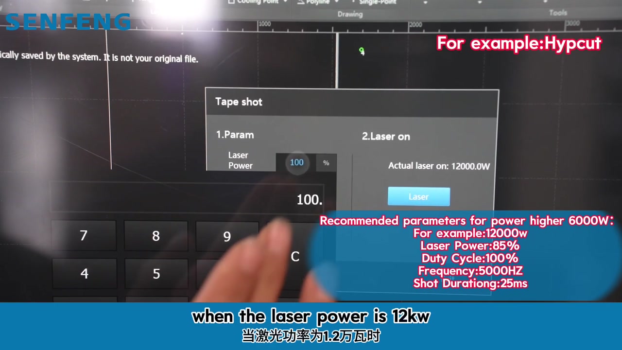 - Paso 10. Si la fuente láser es inferior a 10.000 W: ajuste potencia al 100%, ciclo de trabajo al 100% y frecuencia a 5.000 Hz.